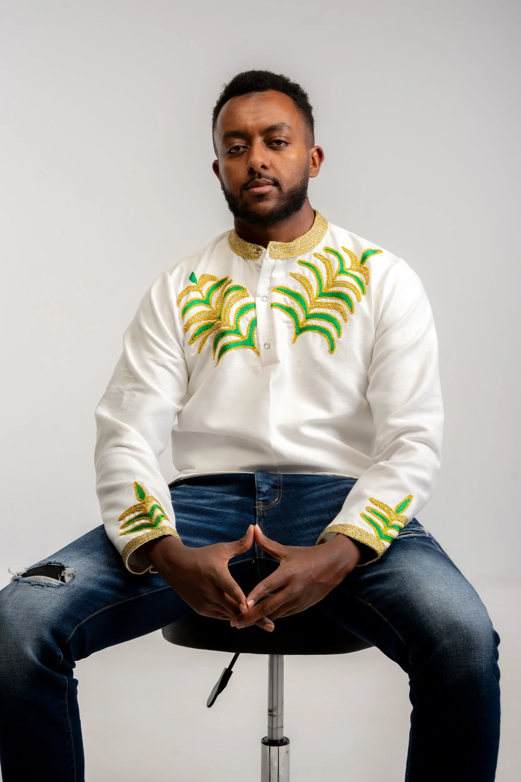Men › Men Full Sleeve Habesha Shirt with Leaf Tilet Details Image 1 of 1 Men Full Sleeve Habesha Shirt with Leaf Tilet Details $50.00 Size: Medium Large Add To Cart Added!
