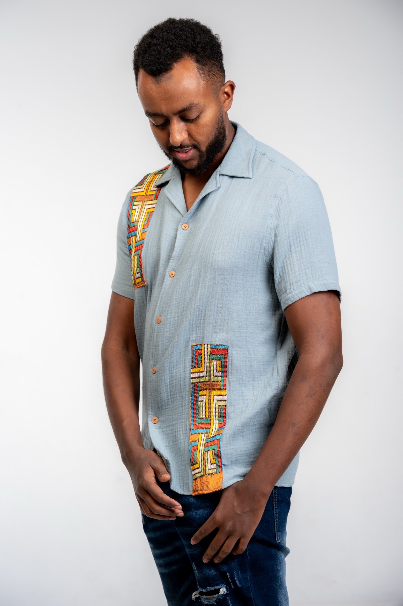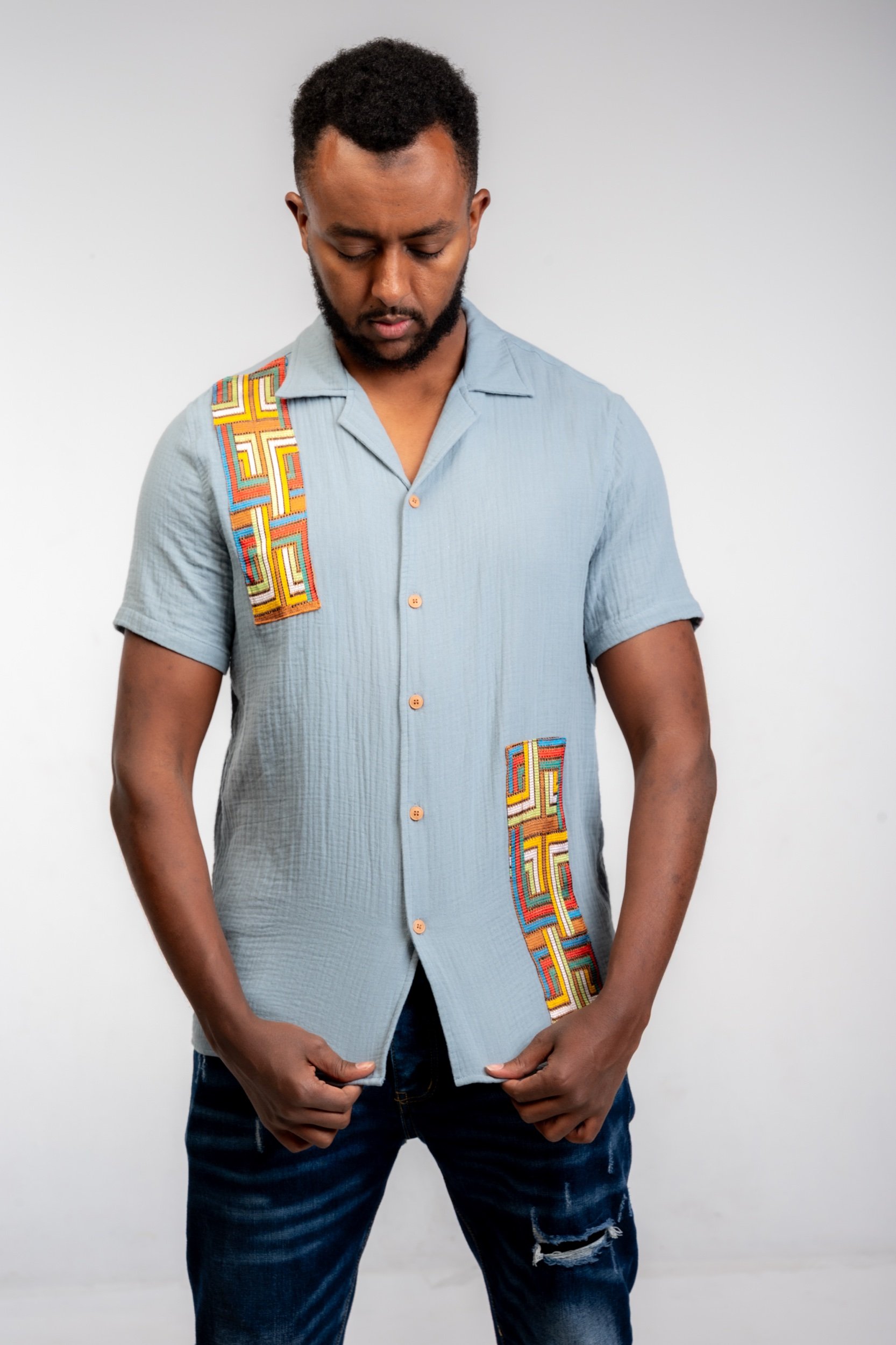 Men › Men Blue Shirt with Geometric Tilet Image 1 of 2 Image 2 of 2 Men Blue Shirt with Geometric Tilet $55.00 Size: Large XL Add To Cart Added!