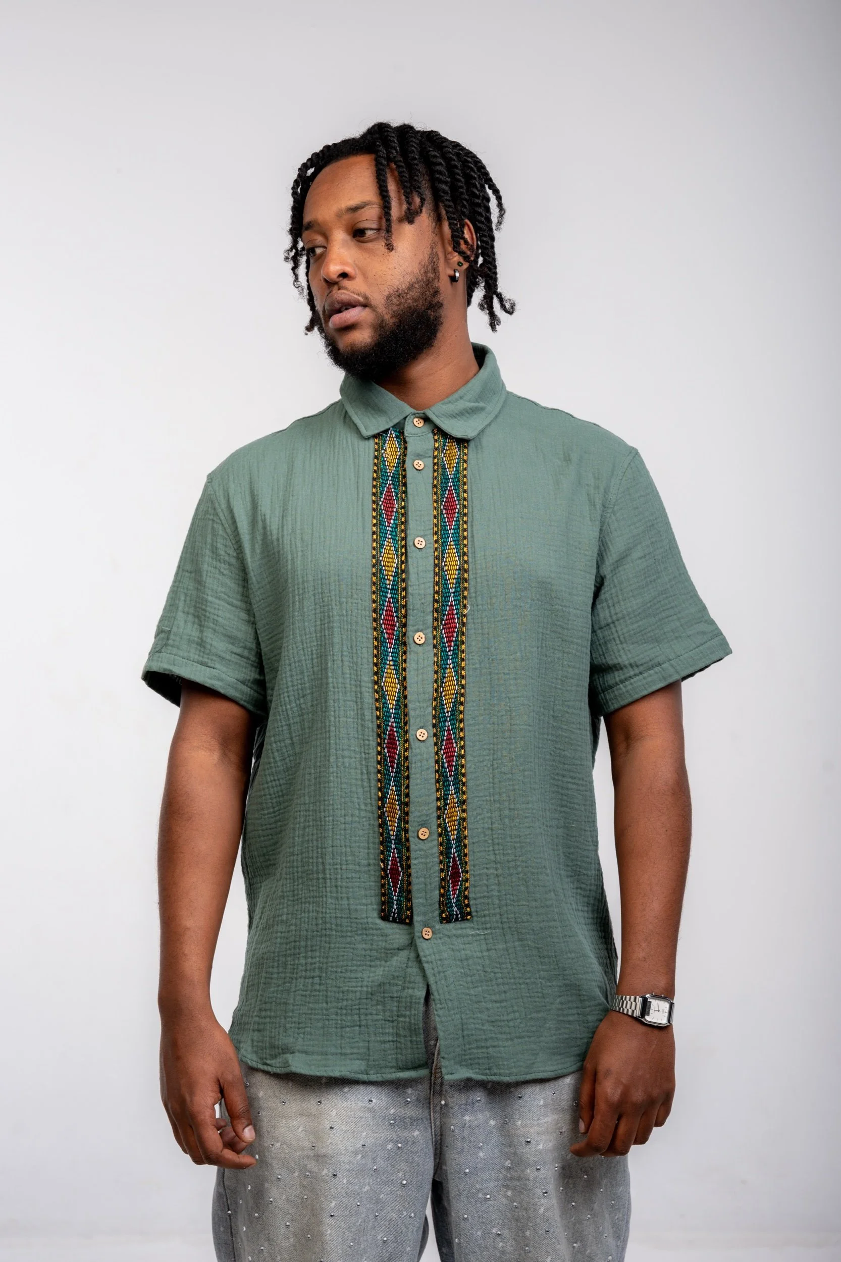 Men › Green Short Sleeve Men Button Up Shirt Image 1 of 3 Image 2 of 3 Image 3 of 3 Green Short Sleeve Men Button Up Shirt $55.00 Size: Small Medium Large XL Add To Cart Added!