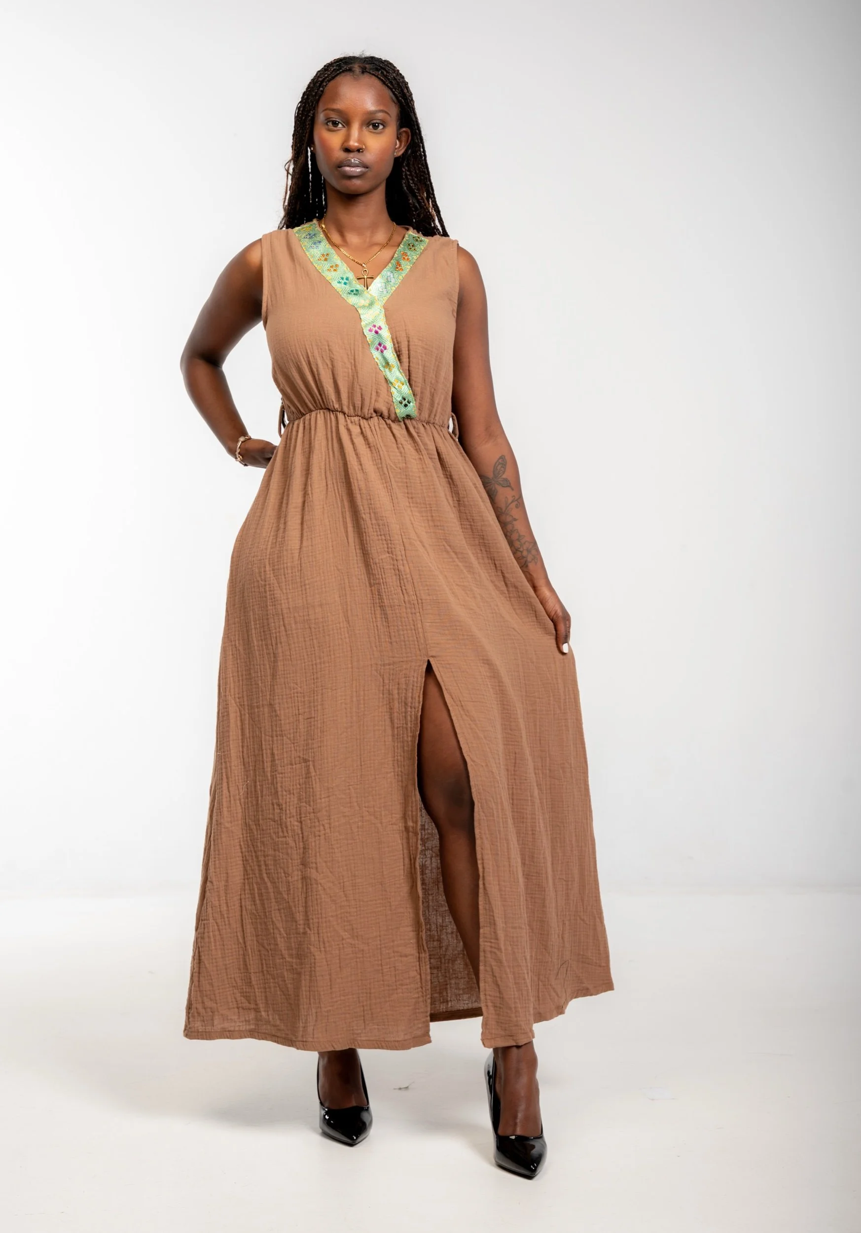 Women › V Neck Slit Hem Dress Image 1 of 3 Image 2 of 3 Image 3 of 3 V Neck Slit Hem Dress $75.00 Size: Small Medium Large Add To Cart Added!